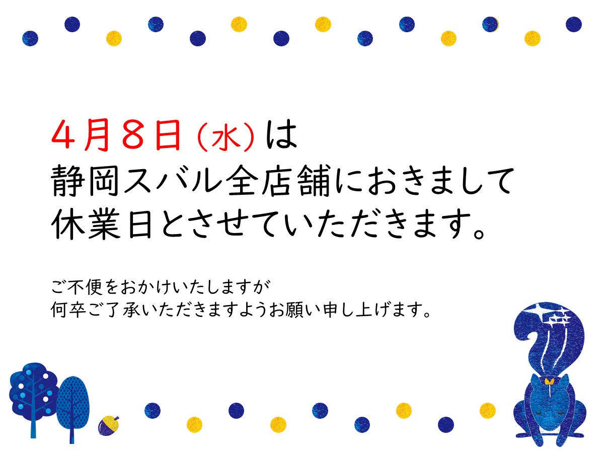 4月8日(水)休業日のご案内